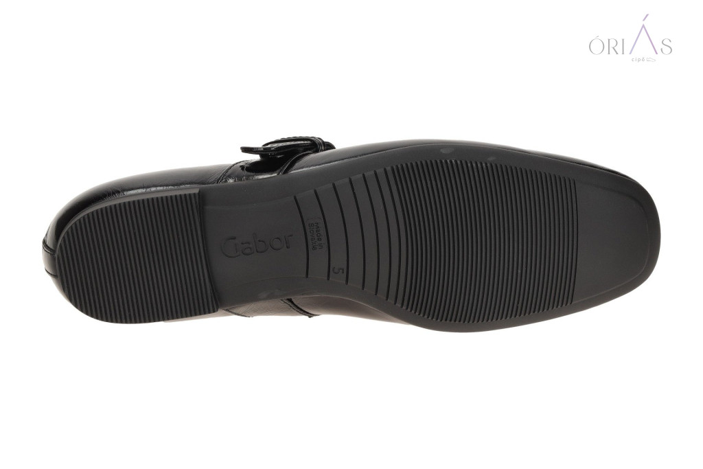 Elegáns fekete Gabor Mary Jane balerina. Minőségi bőrből készült, vékony bőrbéléssel és kényelmes bőrtalpbetéttel. Alacsony blokk sarokkal, mindennapi viseletre ideális.