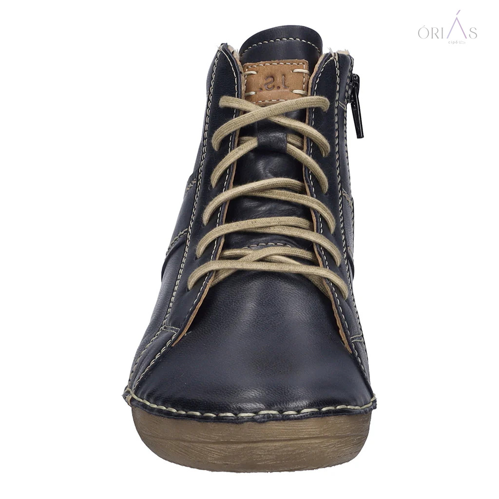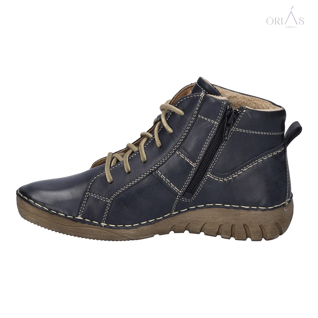 A Josef Seibel Felicia 01 női bokacipő egy stílusos és kényelmes választás minden aktív nő számára. A cipő sötétkék színe elegáns és könnyen kombinálható más ruhadarabokkal. A cipő felső része prémium minőségű anyagból készült, amely ellenáll az időjárási viszontagságoknak és hosszú távú kényelmet biztosít. A fűzőkkel ellátott design lehetővé teszi, hogy személyre szabhassuk a cipő illeszkedését és kényelmét. A Josef Seibel Felicia 01 bokacipő kiváló választás mindennapi viseletre, legyen szó munkáról, bevásárlásról vagy szabadidős tevékenységekről. A cipő kiválóan illeszkedik a lábhoz, és kényelmes viseletet biztosít egész nap. Az erős talp segít megelőzni a fáradtságot és a lábproblémákat hosszú ideig tartó használat során.