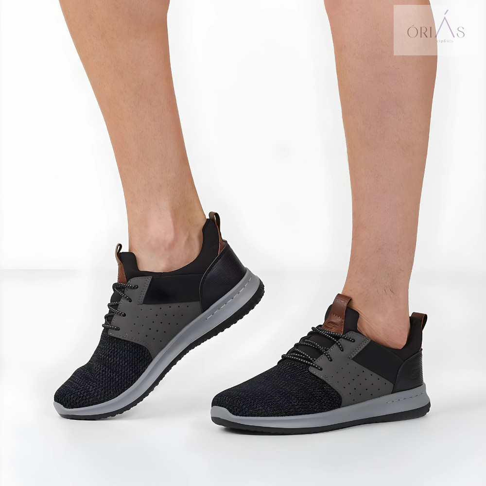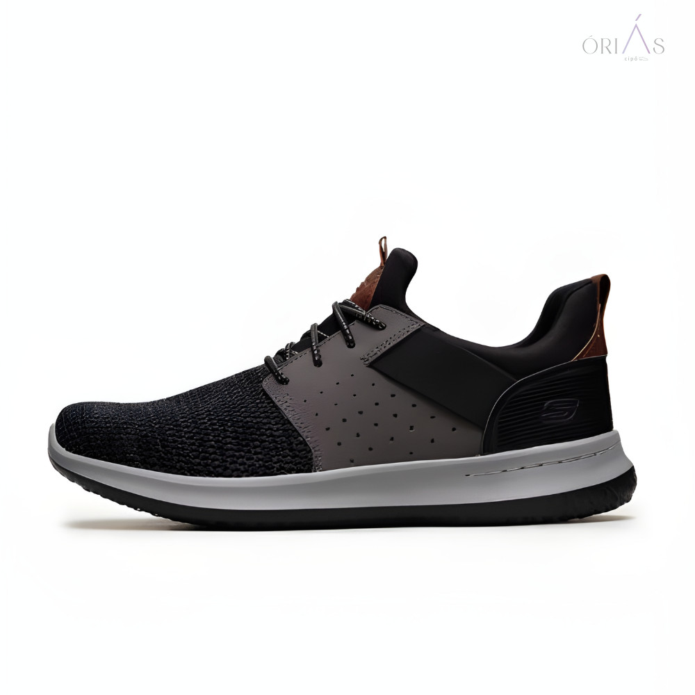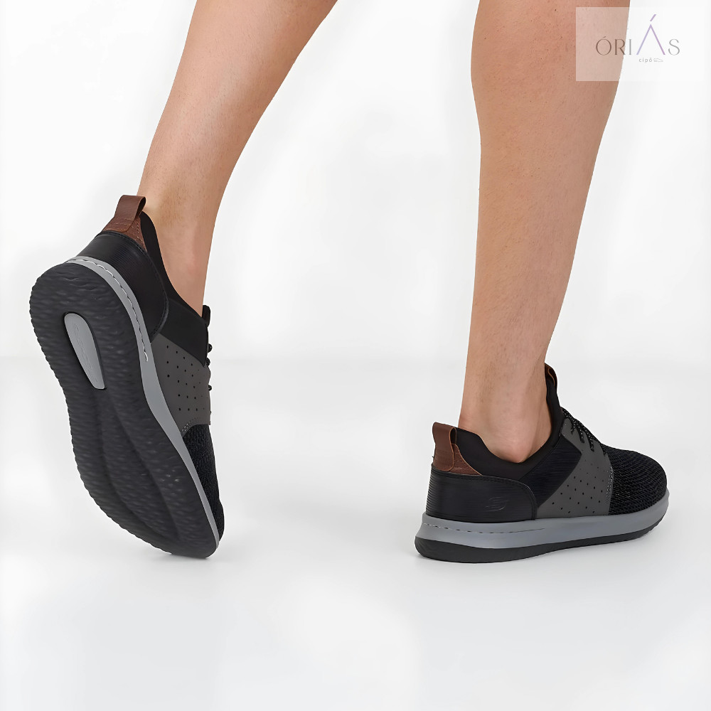 A Skechers 65474 Delson - Camben egy stílusos és kényelmes férfi félcipő, amely a sportos eleganciát ötvözi a Skechersre jellemző komforttal. Ez a modell tökéletes választás a mindennapi viseletre, legyen szó városi sétáról, irodai munkáról vagy egy laza esti programról. A fekete szín klasszikus és sokoldalú, könnyen kombinálható.